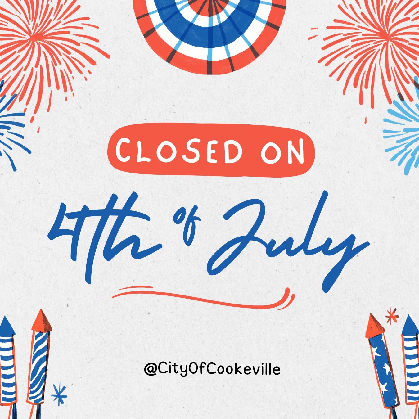 Cookeville City Hall will be closed for Independence Day on Thursday, July 4. Normal hours will resume at 8 a.m. on Friday, July 5.
